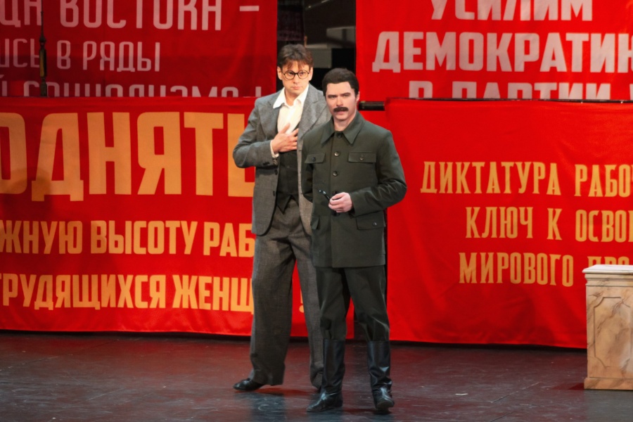 Интересно, что главную роль 24-летнего Сталина исполнил актер Артем Стребляк, имеющий славянскую внешность. В масштабной постановке были задействованы артисты трех тульских театров — драматического, юного зрителя и областной филармонии.
