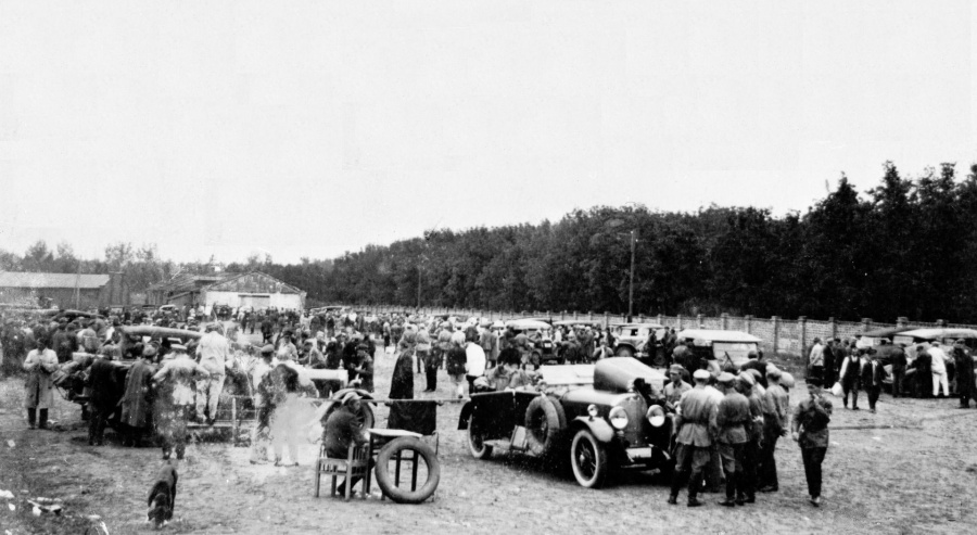 «С утра 22 августа улицы, по пути следования машин, полны ожидающей пробега публикой, — описывал происходящее корреспондент. — На углах и перекрестках настороженные фигуры часовых в походной форме — это линейные, расставленные по пути следования. На Чугунном мосту на ул. Металлистов на деревьях Кремлевского садика на красных полотнищах — приветы гостям на разных языках».